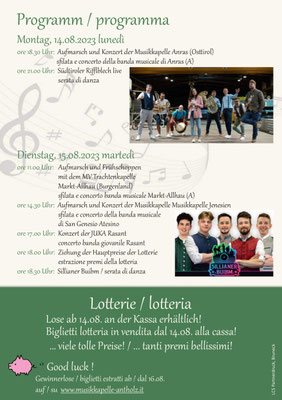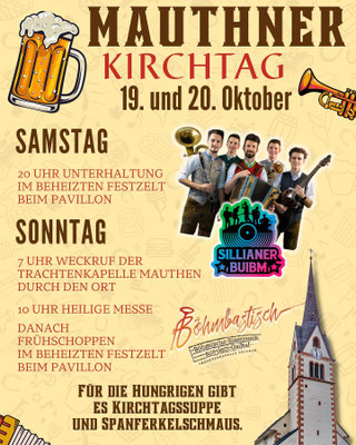 Samstag 6. Sep. 2025 | I-39030 Mitterolang | Mitterolanger Kirchtag | ab 20:00 Uhr |