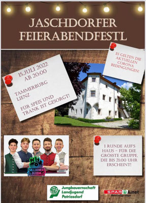 Samstag 21. Juni 2025 | A-9654 St. Lorenzen im Lesachtal | Feuerwehrbewerb | ab 20:30 Uhr |