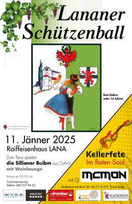 Samstag 11. Jän. 2025 | I-39011 Lana | Schützenball | ab 21:00 Uhr |