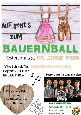 Sonntag 20. Apr. 2025 | A-9843 Großkirchheim | Bauernball | ab 21:00 Uhr |